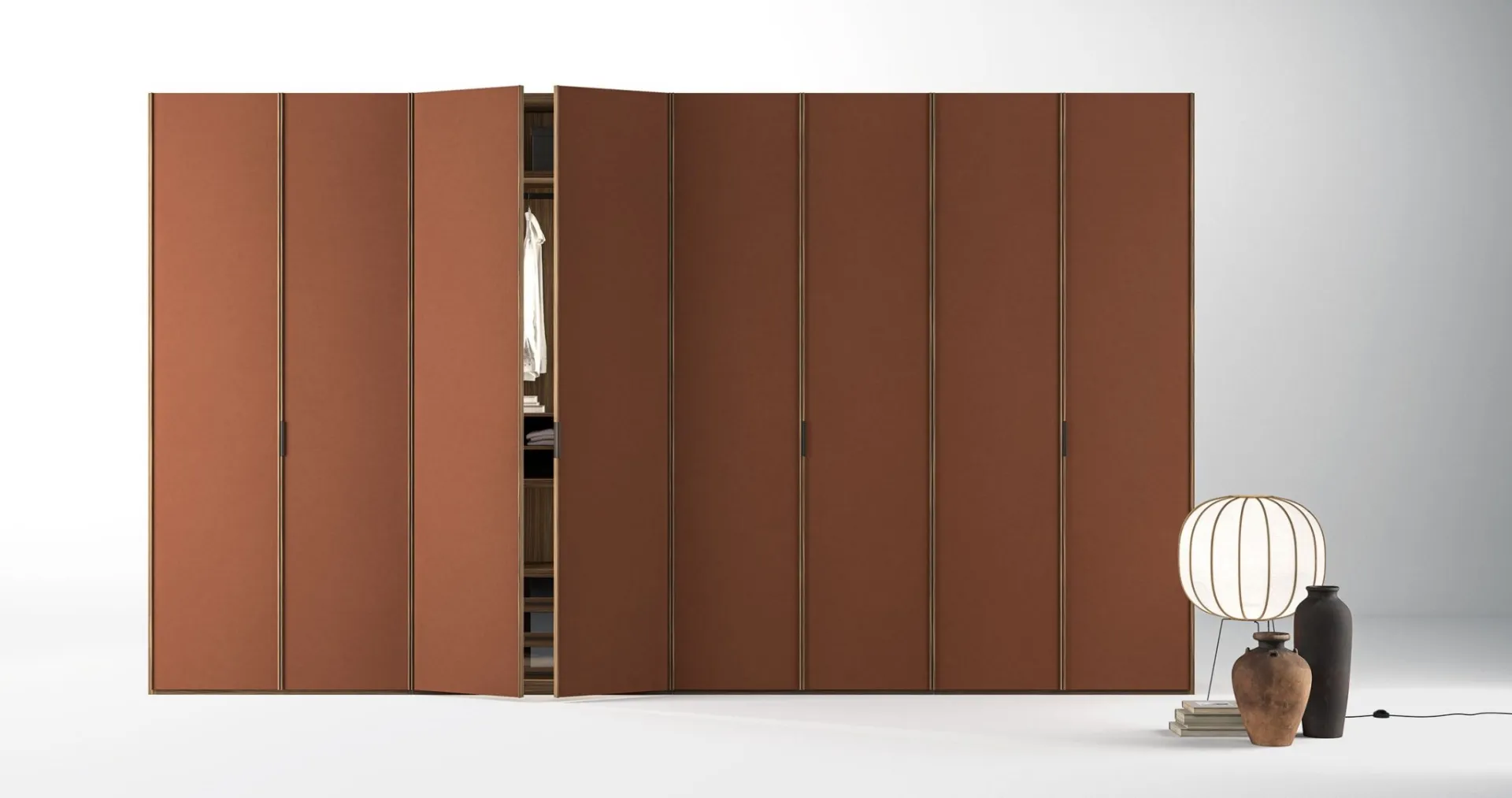 Durata e comfort sono gli ingredienti che, unitamente a un elevato contenuto estetico, connotano tutti gli Armadi a muro moderni della marca Tagliabue Mobili. Una ricca disponibilità di arredi in materico come questo guardaroba con ante battenti nella fotografia. Visitare il nostro negozio vuol dire toccare con mano tanti prodotti del noto e rinomato marchio, sempre di alto contenuto estetico. Armadio rivestito in tecnopelle Kyoto di Tagliabue Mobili: se sei alla ricerca di arredatori professionisti per preventivi e progetti, realizza con noi la casa che hai sempre desiderato. Se desideri creare una stanza bella e funzionale, compila il form o vieni da noi per ottenere infromazioni, complementi e accessori nell'ambito dell'Arredamento Casa.